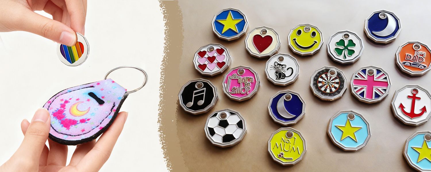 Individuelle Schlüsselanhänger für Einkaufswagenmünzen aus Neopren sind äußerst praktisch und ermöglichen ein einfaches und bequemes Tragen und Zugreifen auf Einkaufswagenmünzen. Unsere maßgeschneiderten Schlüsselanhänger für Einkaufswagenmünzen können auch so gestaltet werden, dass sie diese Tokens sicher halten, was sie zu hervorragenden Werbemitteln für Einzelhandelsgeschäfte, Lebensmittelgeschäfte und Veranstaltungen macht. Die Verwendung dieser funktionalen, individuellen Schlüsselanhänger für Tokens erhöht den Komfort für die Kunden und stärkt gleichzeitig Ihr Markenimage.