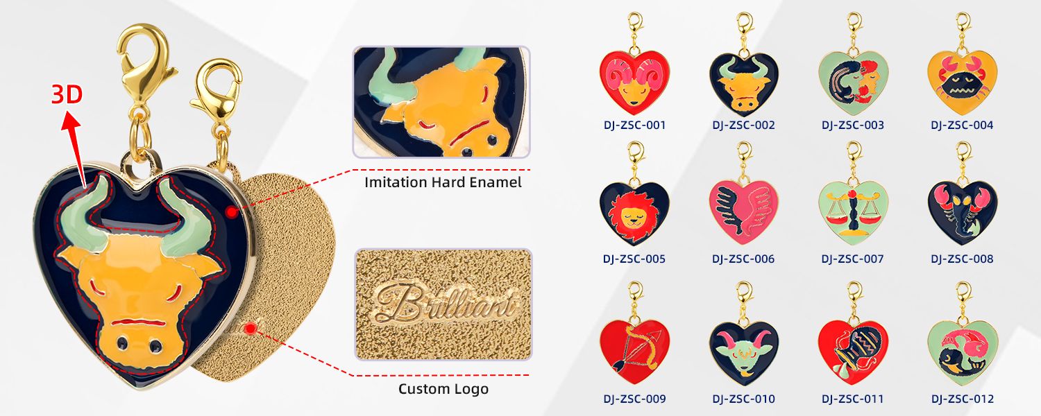 Premium 3D Imitation Hard Enamel Zodiac Charms with Custom Logo Backs