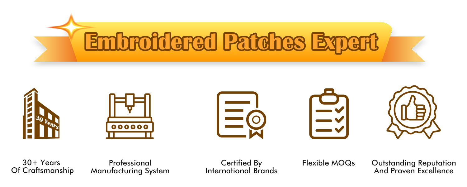 - Amplia experiencia en la industria de más de tres décadas en la producción de parches bordados de alta calidad para ropa, asegurando una artesanía de primer nivel y entrega confiable.