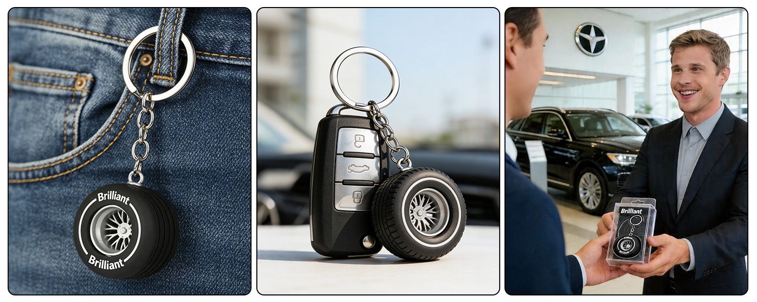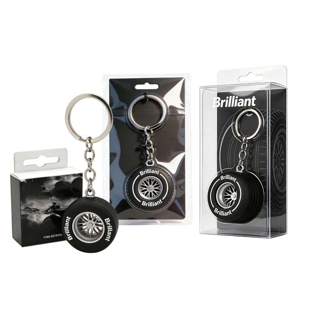 Brilliant propose maintenant ce porte-clés en forme de pneu au design ouvert, vous permettant d'ajouter rapidement des logos imprimés afin que votre marque puisse se démarquer sans coûts de moule supplémentaires ni longs délais. Chaque porte-clés en forme de pneu de moule en stock présente un pneu en silicone doux et une roue en alliage de zinc pour une sensation réaliste, et vous pouvez personnaliser les couleurs pour créer différents looks. Ces porte-clés en forme de pneu personnalisables sont des articles promotionnels idéaux pour les concessionnaires automobiles, les ateliers de réparation, les distributeurs de pneus et les événements de course de formule. Qu'ils soient utilisés comme présentoirs en magasin, cadeaux de fidélité pour les clients ou cadeaux lors d'événements, nos porte-clés de pneus personnalisés offrent une forte visibilité de la marque et un attrait durable. Contactez-nous maintenant pour des échantillons ou pour commencer votre personnalisation!
