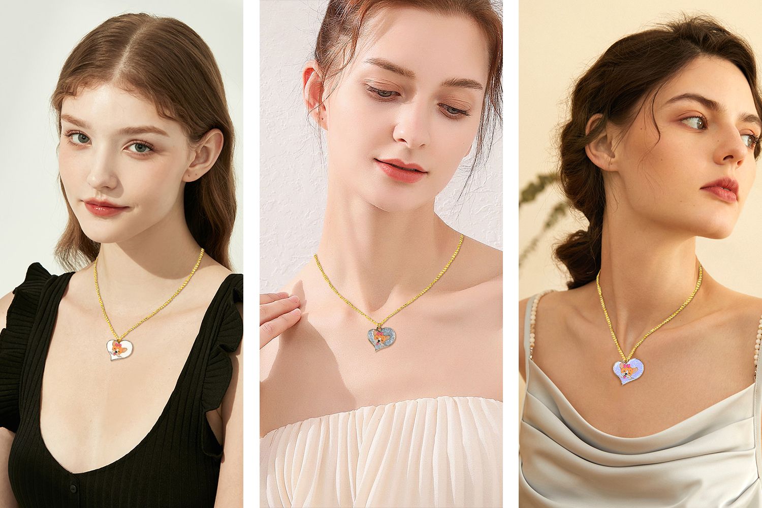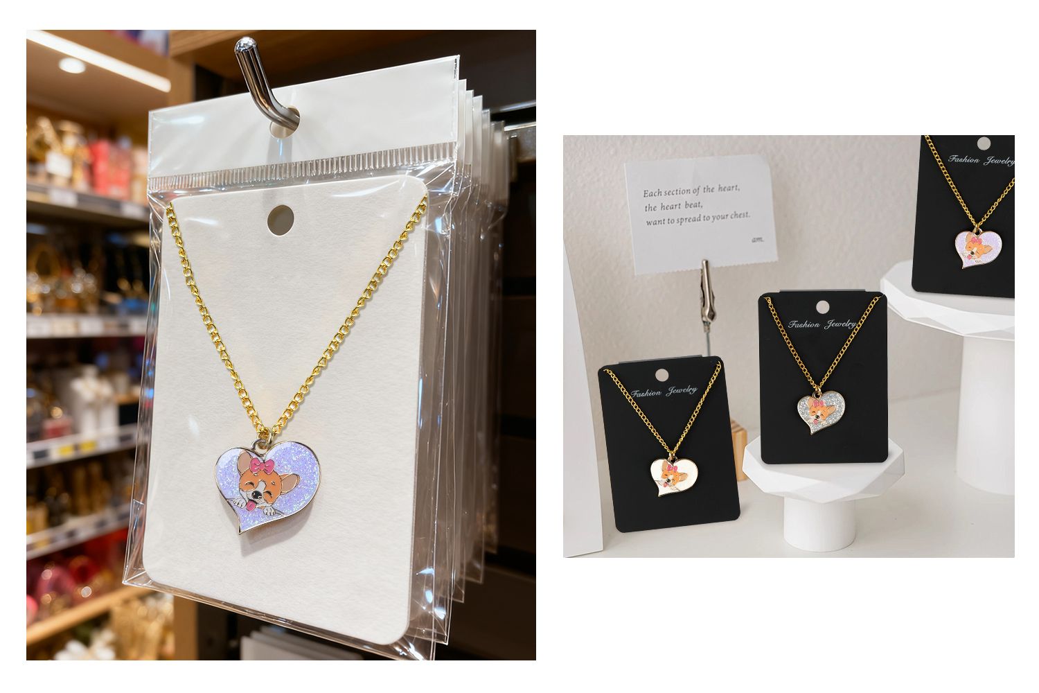 שילוב יפה של הקסם הסימבולי של אהבה וחברות, התליון העמיד בצורת שרשרת מציג פנים חמודות של קורגי הממוקמות בתוך צללית של לב. המילוי הרך של האמייל מביא צבעים חיים ומרקם חלק לעיצוב. התליונים הקלים והאלגנטיים שלנו בצורת לב מגיעים בשלושה סגנונות אטרקטיביים: לבן קלאסי, נצנצים כסופים ונצנצים סגולים, מה שהופך אותם לתוספות בולטות לכל אירוע.