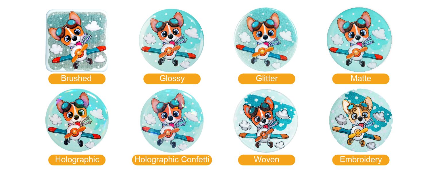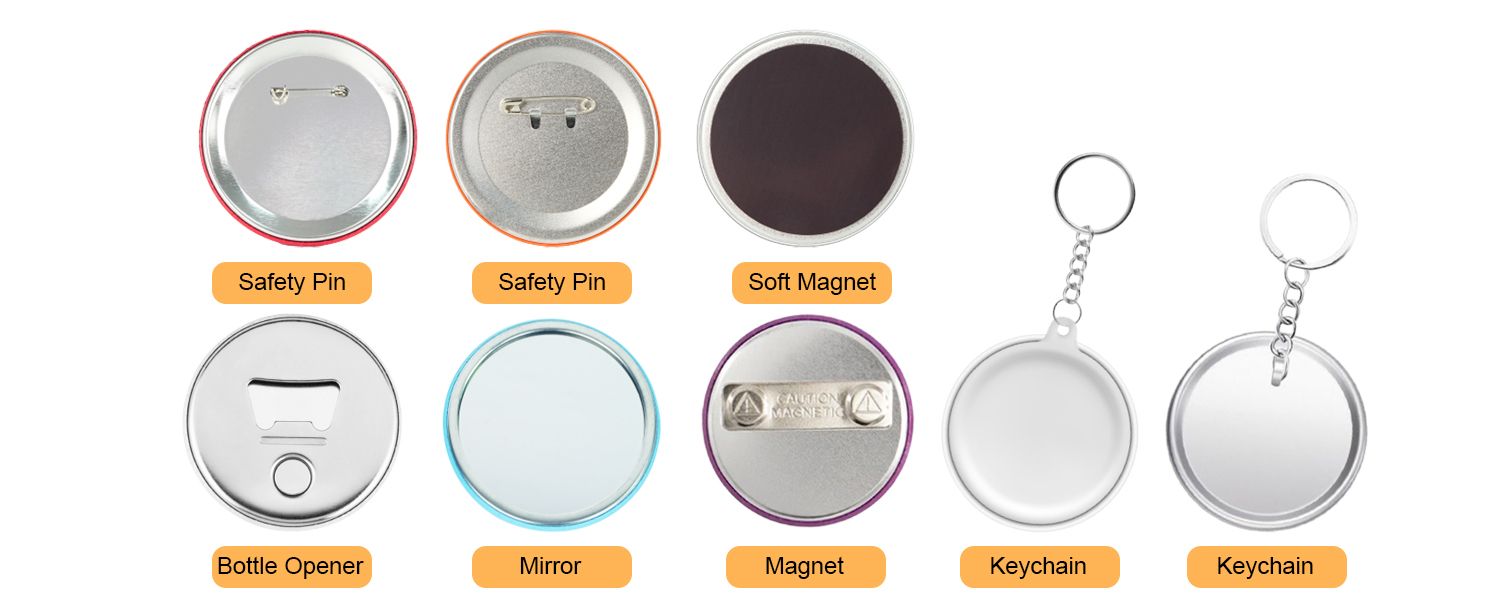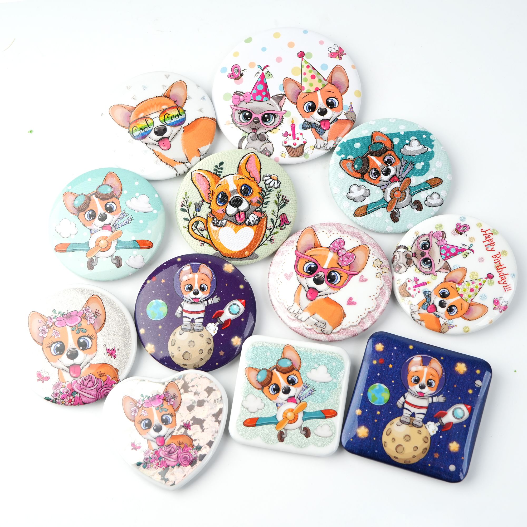 私たちのかわいいボタンピンは、衣服やバッグにしっかりと留めるための標準的な安全ピン、冷蔵庫に飾るためのマグネット、実用的なコンパクトミラー、さらにはキーリングやミニフォトフレームなど、さまざまな付属品が付いています。これにより、愛らしいコーギーピンバッジが多機能な記念品に変わります。これらの追加機能は、シンプルなピンバックボタンを便利で記憶に残るアイテムに変えることで、顧客のエンゲージメントを高め、あなたのブランドをお気に入りの存在にします。