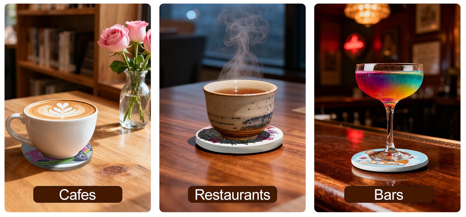 세라믹 카와이 컵 코스터는 카페, 레스토랑, 바, 호텔 및 기업 선물에 이상적입니다. 그들은 기능적인 브랜딩 도구로서 작용하여 테이블 프레젠테이션을 향상시키고 표면을 습기와 열 손상으로부터 보호합니다. 프로모션 경품이나 소매 판매에 완벽한 우리의 귀여운 코스터는 매력적인 사전 디자인 패턴으로 어떤 환경에도 우아함을 더합니다. 선물, 메뉴 액세서리 또는 장식품으로 사용되든, 귀여운 음료 코스터는 다양한 상업 환경에서 다재다능하고 스타일리시하며 실용적입니다.