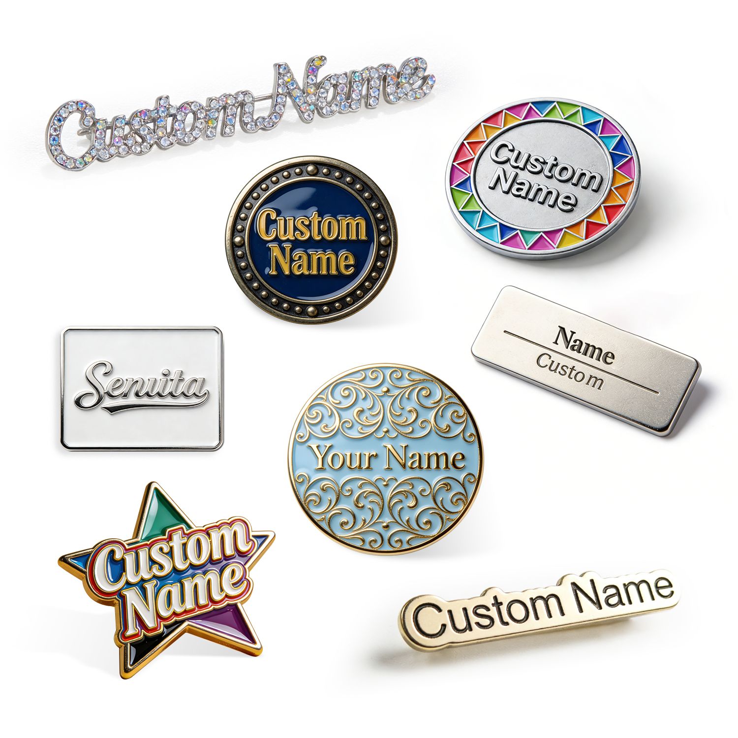 비즈니스를 위한 맞춤 이름 태그 핀 – 전문적이고 내구성이 뛰어남를 정밀하고 세심하게 제조하는 것을 전문으로 합니다.맞춤 이름 태그 배지는 귀하의 브랜드 사양에 맞게 제작되어 프로모션, 이벤트 또는 소매에 완벽합니다.