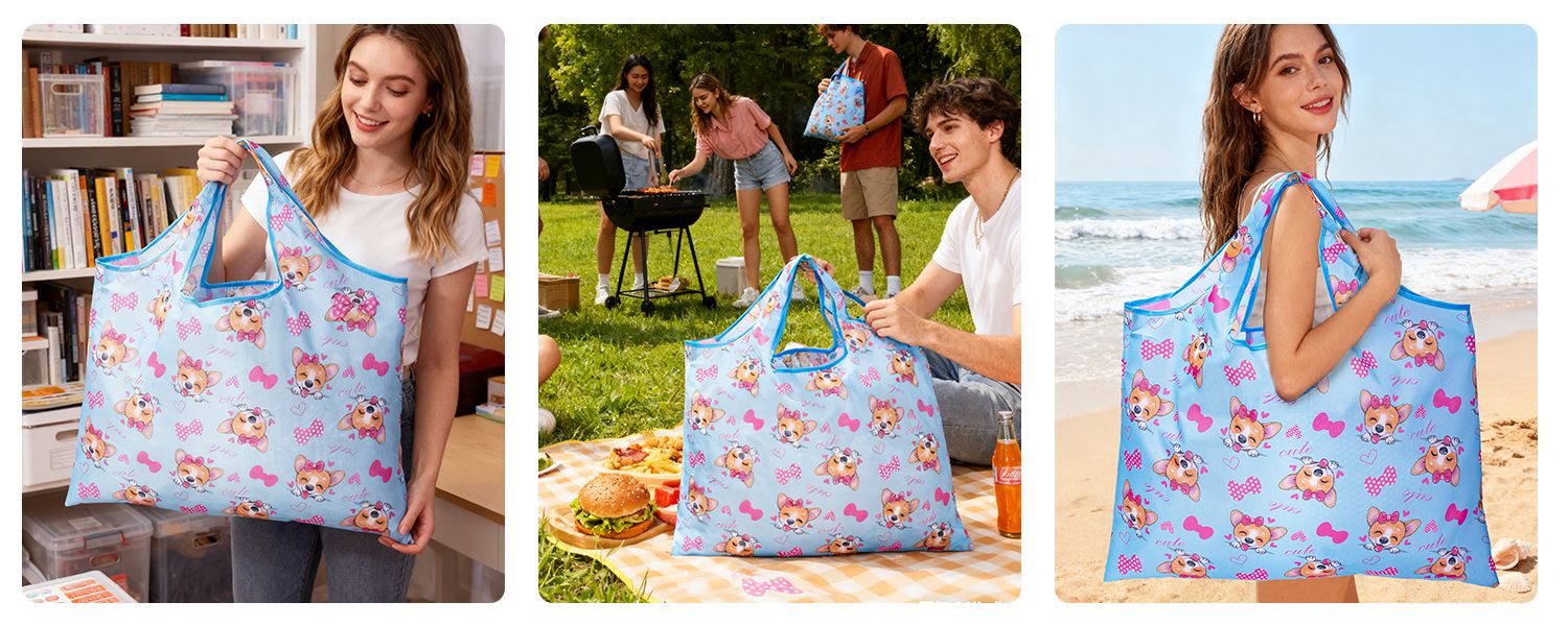 우리의 접이식 폴리에스터 토트백은 일상 쇼핑을 위한 비용 효율적이고 환경을 생각한 선택으로 돋보입니다. 프리미엄 찢어지지 않는 폴리에스터 원단으로 제작된 이 접이식 쇼핑백은 일상적인 마모를 견딜 수 있도록 설계되었습니다. 사랑스러운 코기 디자인은 열전사로 인쇄되어 오랫동안 선명함을 유지하며, 색상이 생생하게 유지되고 시간이 지나도 바래지 않습니다. 즉시 배송 가능한 이 접이식 토트백은 빠른 배치에 완벽합니다. 우리의 폴리에스터 쇼핑 접이식 가방은 뛰어난 내구성, 친환경성 및 가치를 제공합니다. 이는 환경을 고려하는 소비자와 공감할 수 있는 신뢰할 수 있는 재사용 가능한 판촉 제품을 찾는 브랜드에 이상적입니다. 오늘 주문하시려면 저희에게 연락해 주세요!