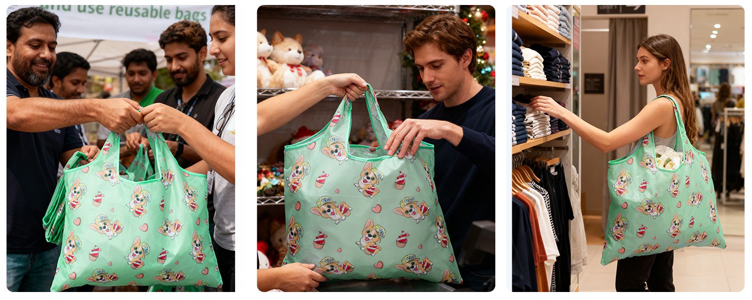 이 대형 재사용 가능한 쇼핑 토트백은 소매점, 슈퍼마켓, 환경을 생각하는 브랜드, 판촉용 경품, 야외 시장 등 다양한 용도에 적합합니다. 그들의 견고한 디자인은 장보기, 책 운반, 체육관 용품 또는 여행 필수품에 적합합니다. 지속 가능한 포장이나 판촉 상품을 찾는 브랜드에 완벽한 이 접이식 재사용 가능한 장바구니는 내구성이 뛰어나고 친환경적인 토트백이 필요한 모든 환경에 적합한 다재다능함을 제공합니다. 그들의 매력적인 디자인은 선물 가게와 이벤트 경품에도 잘 어울리며, 브랜드가 고객에게 실용적인 가치를 제공하는 동시에 환경에 대한 헌신을 홍보하는 데 도움을 줍니다.