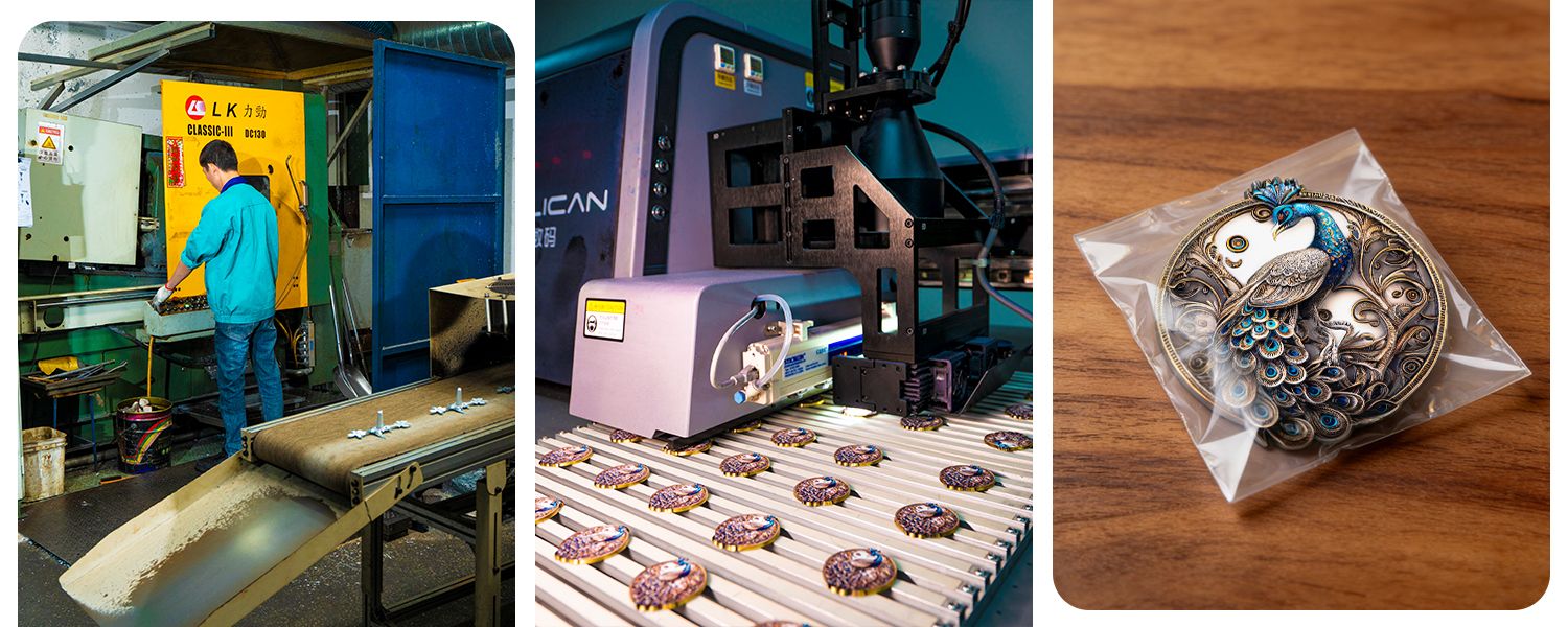Como fabricante direto com mais de quatro décadas de experiência, controlamos cada etapa da produção — desde a fundição de metal bruto até a embalagem final. Este serviço completo nos permite garantir preços de nível de fábrica, qualidade consistente e prazos curtos para moedas de metal impressas em UV personalizadas de qualquer escala. Nossa fábrica atende aos rigorosos padrões de marcas globais e está totalmente certificada para segurança e conformidade ambiental. Os clientes B2B confiam em nós para transformar obras de arte de moedas complexas em produtos precisos e prontos para o mercado que refletem o prestígio e a confiabilidade de sua marca.